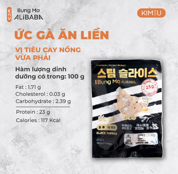 Mua tại TiktokVới sản phẩm tươi sống, trọng lượng thực tế có thể chênh lệch khoảng 10%. Vị ngọt của gà hoà quyện với hương vị cay nồng của tiêu, đưa bạn quay về ký ức bên mâm cơm thân thuộc của mẹ. Vị cay của tiêu được điều chỉnh vừa phải giúp món ăn vừa dễ ăn nhưng vẫn giữ được mùi thơm đặc trưng, lưu lại trên đầu vị giác. Chỉ cần 2 phút mở gói và hâm nóng ức gà đã được cắt lát và nêm nếm sẵn là bạn đã thưởng thức bữa ăn lành ngon, tiện lợi. Thịt gà vẫn tươi nhờ giữ được độ mềm thơm đậm vị trong từng thớ thịt vẹn nguyên dưỡng chất. Nhờ có hàm lượng protein cao, ít chất béo và không tinh bột, ức gà ăn liền KimandYou giúp xây dựng cơ bắp chắc khoẻ và đẩy nhanh quá trình đốt cháy mỡ thừa. Đây chính là là sự lựa chọn dinh dưỡng số 1 dành cho người đam mê tập thể hình gymer, runner và yoga để sở hữu vóc dáng thon thả, tăng cơ 6 múi." Công dụng sản phẩm: