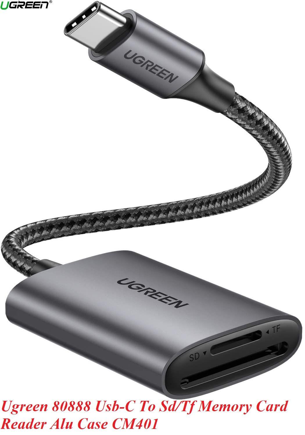 ✨Ugreen 80888 SD/TF chuẩn USB 3.1 Type C Đầu đọc thẻ nhớ vỏ nhôm cao cấp Ugreen CM401 - Hàng Chính Hãng