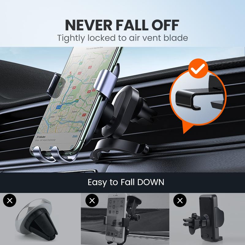 1. Suitable for 4.7-7.2 inches screen phones 2. Rotatable pivot structure allows multi-angle adjustable 3. Auto-Clamp Linkage: lock your phone tightly with five gravity arms 4. Arc-Shaped mounting clip: Firm Grip Onto Air Vent 5.