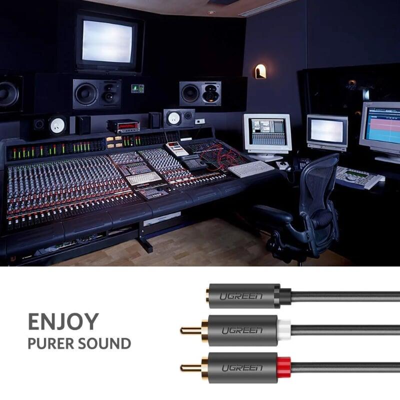 UGREEN AV102 cáp chuyển jack 3.5mm Stereo sang 2 cổng hoa sen RCA. Cáp sử dụng để kết nối điện thoại, thiết bị nghe nhạc IPod, MP3 player, máy tính bảng hoặc máy tính đến