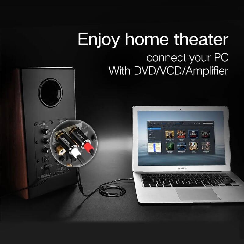 - Cáp Chuyển Đổi Ugreen 3.5mm Sang 2 RCA 10511 (1.5m) được dùng để kết nối từ điện thoại, máy tính, máy nghe nhạc… đến các thiết bị âm thanh có chuẩn RCA (hoa sen)