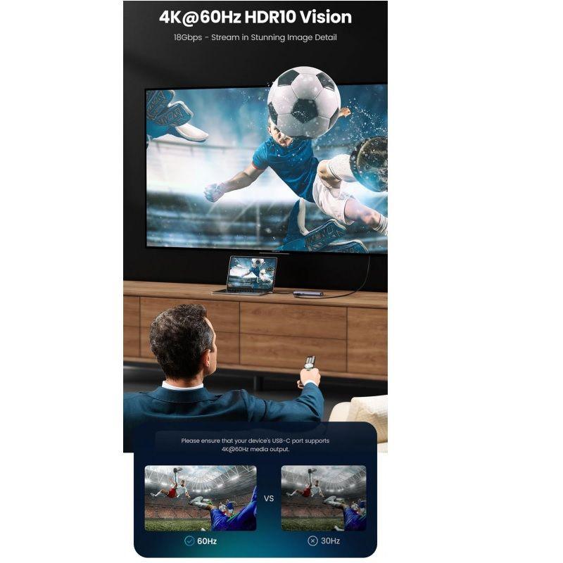 1. Hãng : Ugreen 2. Mã sản phẩm : 70495 – CM136 3. Màu : Xám 4. UGREEN Loại C Thunderbolt 3 được thiết kế với một cổng HDMI 4k ở 30Hz, 3 cổng USB