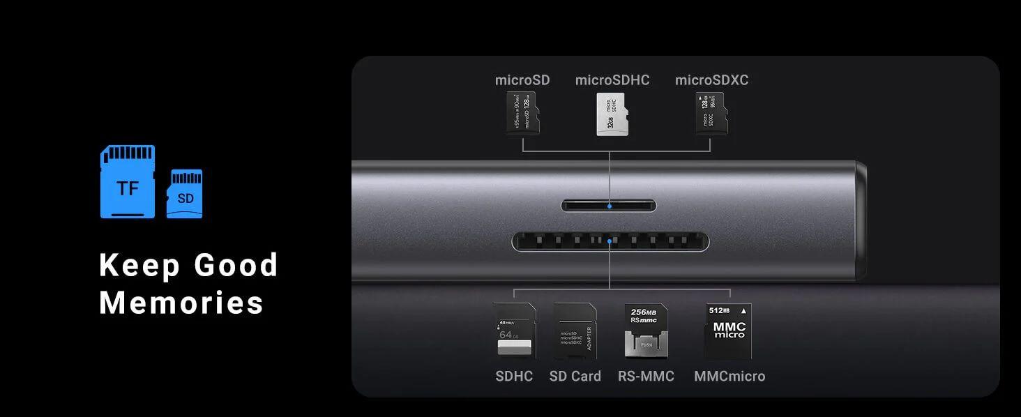 1. Hub đa năng 6 trong 1 Ugreen 80129 giúp bạn mở rộng từ 1 cổng USB Type C sang các cổng khác như HDMI, USB 3.0, khe đọc thẻ nhớ. Giúp bạn kết nối