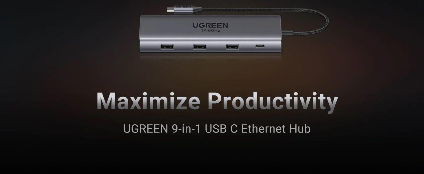 1. Hub USB C mở rộng khối lượng lớn: UGREEN USB C Hub cung cấp giải pháp đơn giản để nâng cấp PC của bạn, mở rộng Cổng 3xUSB 3.0, Gigabit Ethernet và cổng sạc