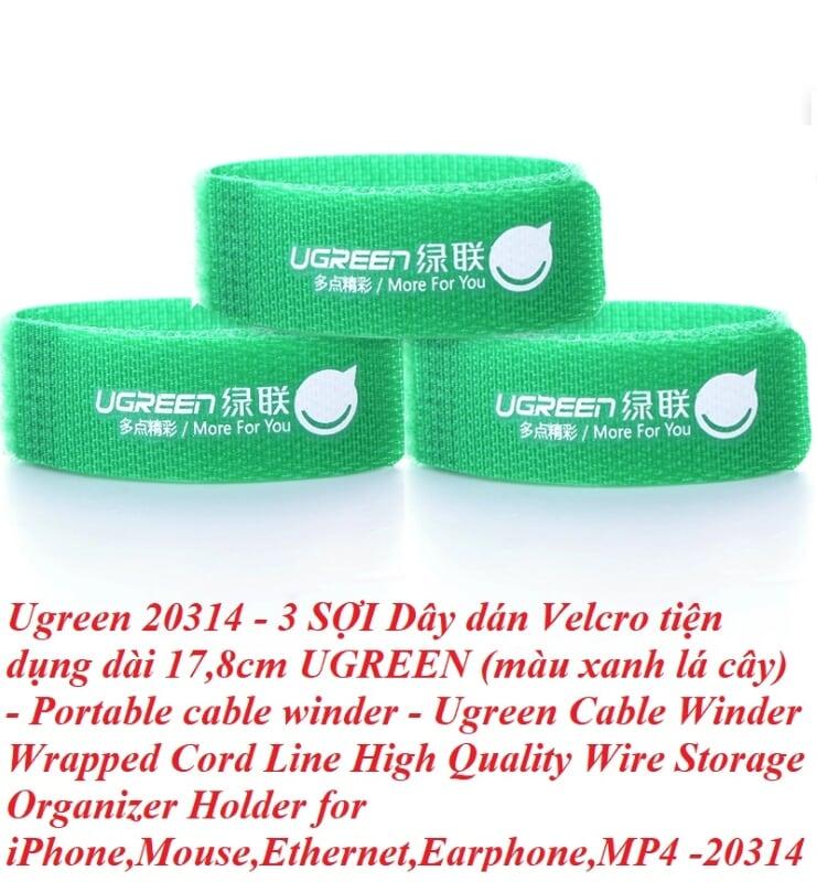 Mua tại TiktokUgreen 20314 17.8Cm 3 Pcs Green Velcro Cable Winder Wrapped Line Organizer dây nylon dán
