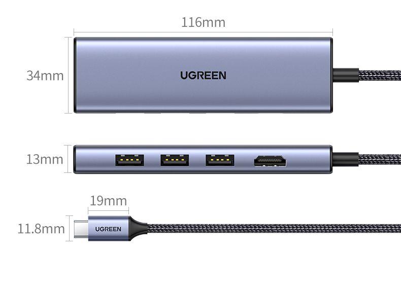1. Hãng : Ugreen 2. Mã sản phẩm : 70495 – CM136 3. Màu : Xám 4. UGREEN Loại C Thunderbolt 3 được thiết kế với một cổng HDMI 4k ở 30Hz, 3 cổng USB