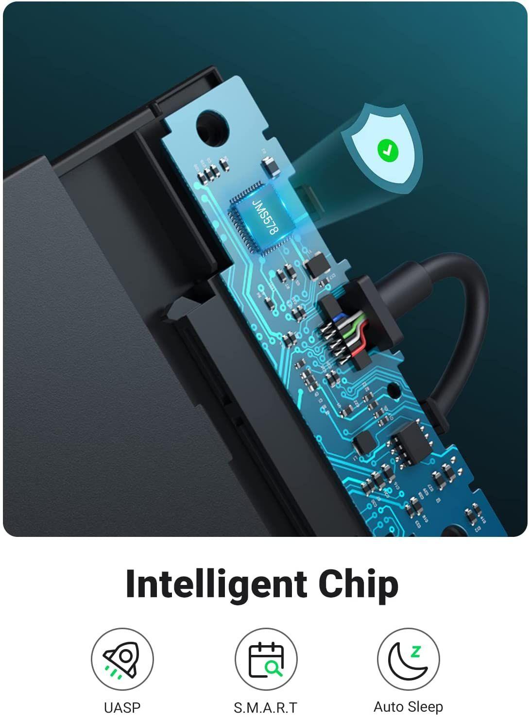 ✨Ugreen UG30719CM471TK 50CM 6TB Màu Đen Hộp đựng ổ cứng 2,5 inch SATA3 USB 3.0 tốc độ truyền 5Gbs Cáp liền - HÀNG CHÍNH HÃNG