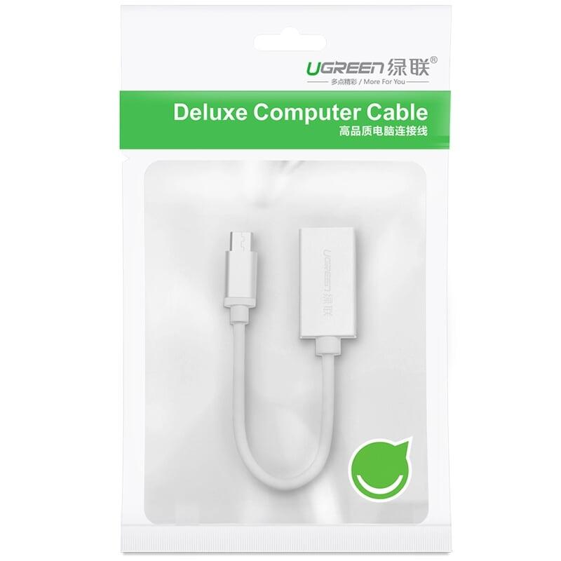 Ugreen 10822 12cm micro usb otg cable trắng us133 1. Length : 12CM 2. Color : White 3. USB Version : 2.0 4. Data Transfer Link Cable USB 2.0 OTG 5. 100 g 6. 15