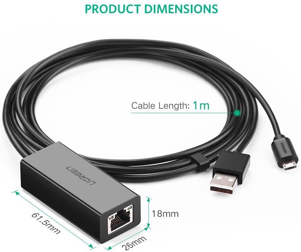 ✨Ugreen UG3098530985TK 1M màu đen card mạng usb có thêm cổng micro dùng cho Fire TV Stick 4K All New Fire TV 2017 Chromecast Google Home Mini - HÀNG CHÍNH HÃNG