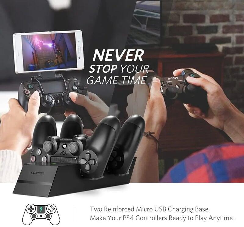 Hổ trợ sạc cùng lúc 2 tay cầm game PS4