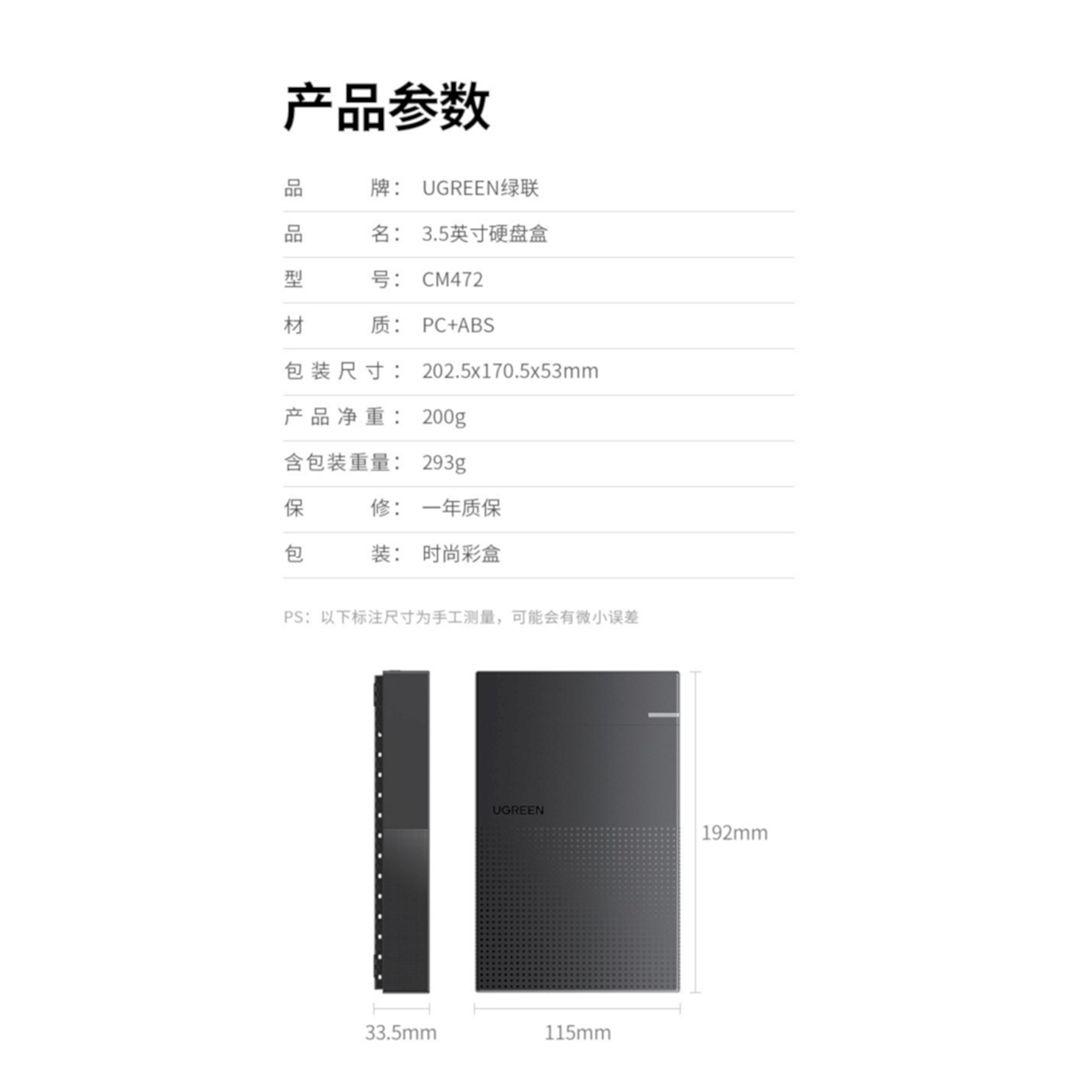 Ugreen 50422 usb 3.0 3.5 inch hard disk box black us222 1. Input:USB3.0-B Female adapter 2. Output:(7+15)Pin SATA port 3. Suppot UASP transport protocol 2. Support SATA 3.0 compatible with SATA 2.0/SATA 1.0 4. Support