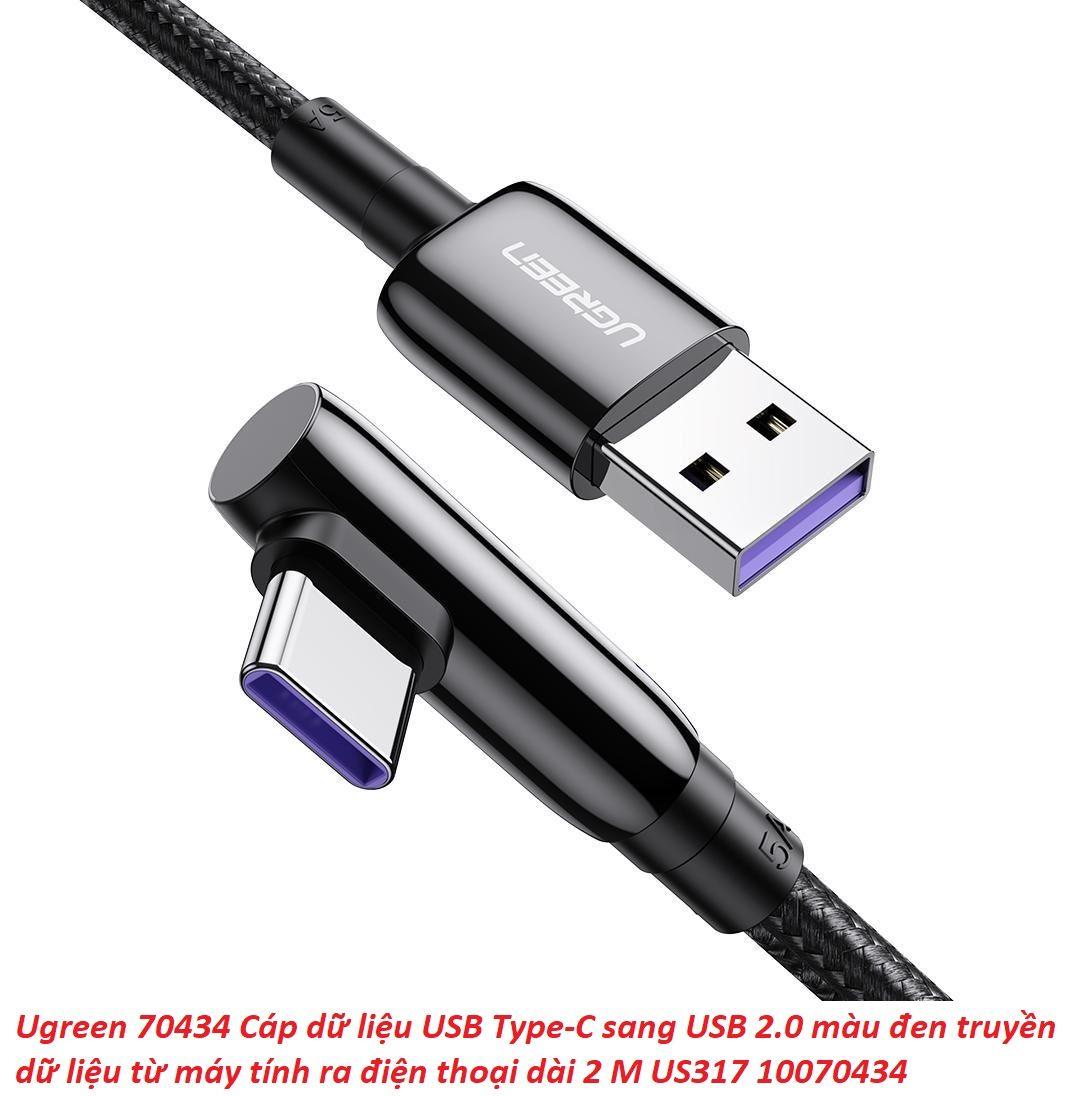 ✨Ugreen UG70434US317TK 2M bẻ góc C 90 độ Cáp USB A sang Type-C 2.0 màu đen truyền dữ liệu từ máy tính ra điện thoại - HÀNG CHÍNH HÃNG
