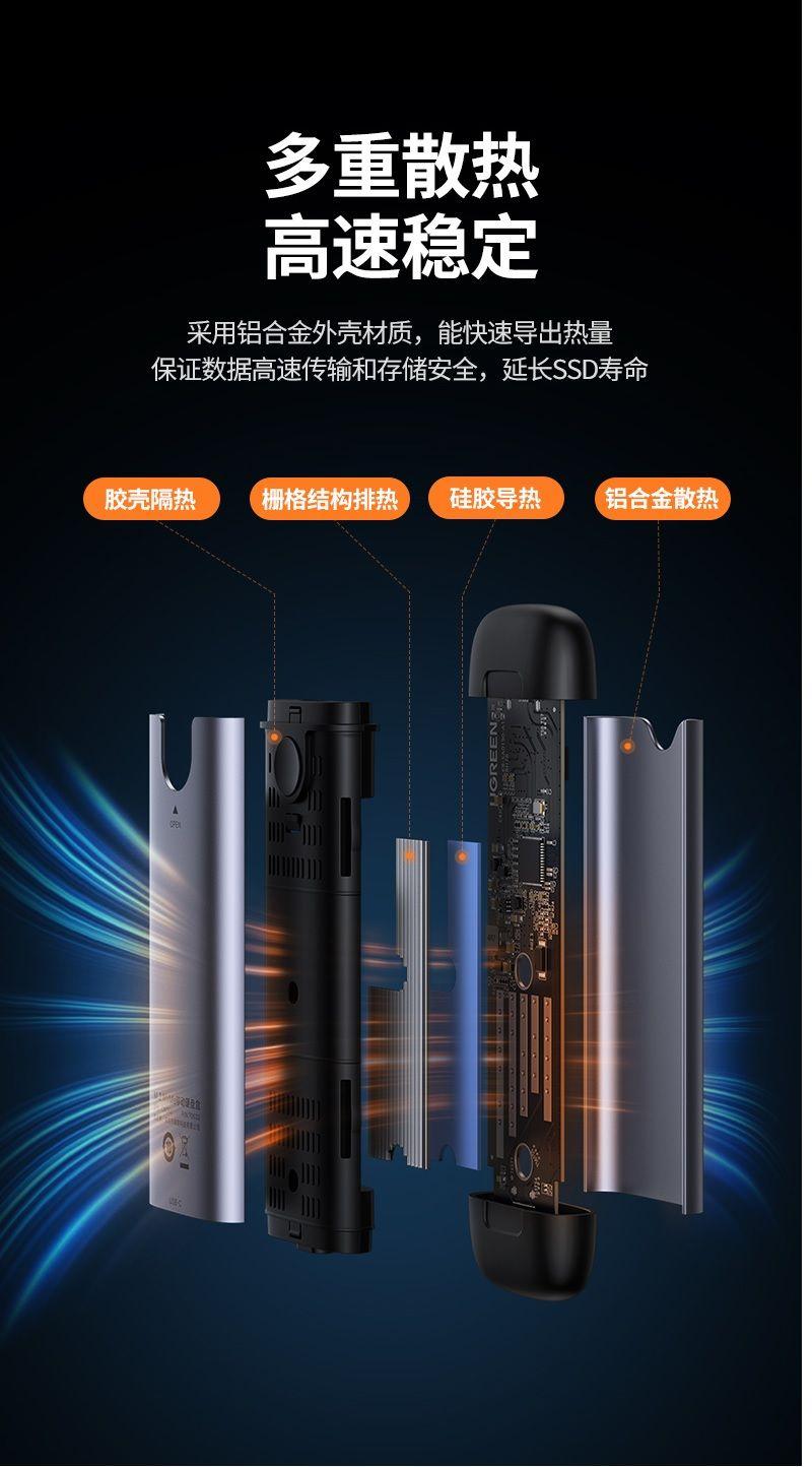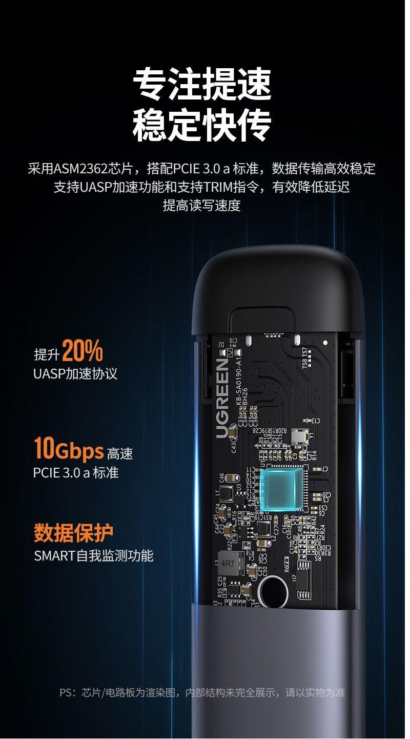 Cận ccảnh Hộp box đựng ổ cứng gắn ngoài USB-C 3.1 to SSD M.2 NVMe, PCIe, M-Key 10Gbps Ugreen 10902
