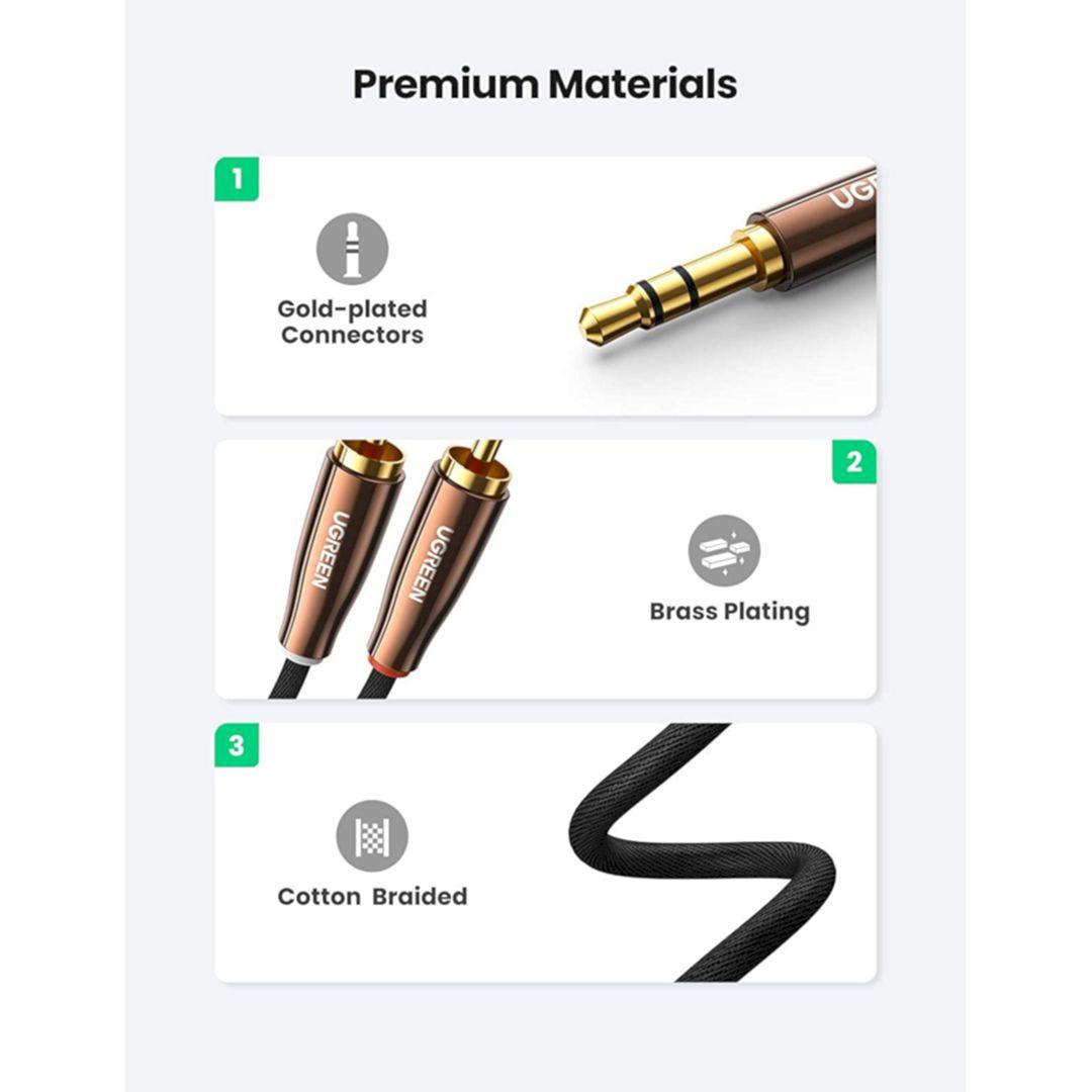 ✨Ugreen UG80846AV170TK 1.5M Màu Đen Đầu cáp Màu Nâu Cáp chuyển đổi âm thanh 3.5mm sang 2 cổng RCA - HÀNG CHÍNH HÃNG