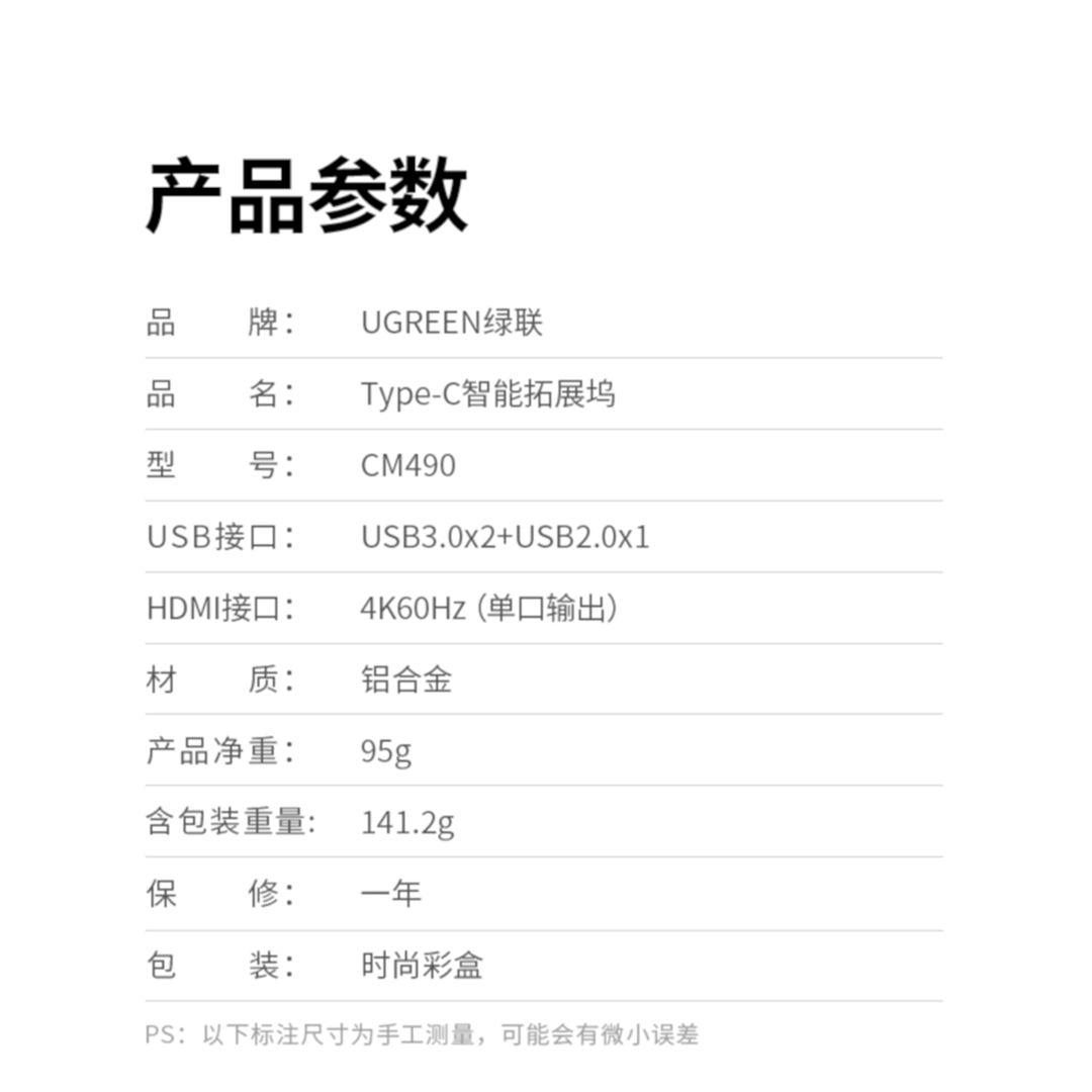 1. Hãng : Ugreen 2. Mã sản phẩm : 70495 – CM136 3. Màu : Xám 4. UGREEN Loại C Thunderbolt 3 được thiết kế với một cổng HDMI 4k ở 30Hz, 3 cổng USB