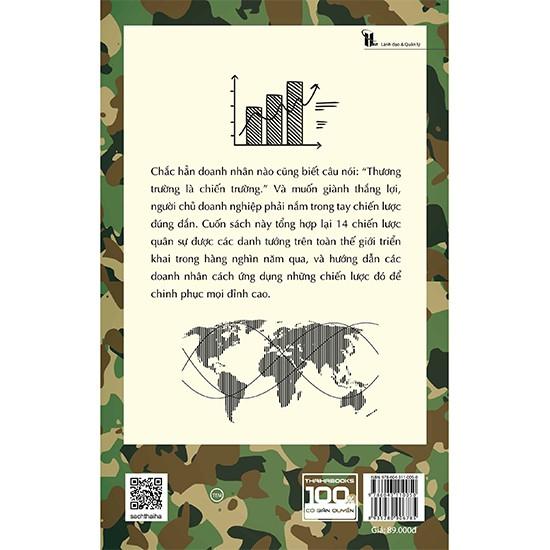 [ThaiHaBooks] Có một câu ngạn ngữ không ai không biết: “Thương trường là chiến trường.” Những vị tướng chỉ huy ngoài mặt trận cũng là những nhà lãnh đạo tài ba. Bởi vậy, những nguyên tắc cốt lõi của việc điều binh khiển tướng cũng có thể áp dụng vào kinh doanh. Nhà tư tưởng Virender Kapoor đã nghiền ngẫm cuốn Binh pháp Tôn Tử cùng lịch sử chiến tranh cận đại và hiện đại để rút ra 14 chiến lược quân sự có thể áp dụng trong kinh doanh cũng như mọi mặt của cuộc sống. Các nhà lãnh đạo, quản lý sẽ tìm thấy những chiến lược này trong cuốn sách Ứng dụng chiến lược quân sự trong kinh doanh.