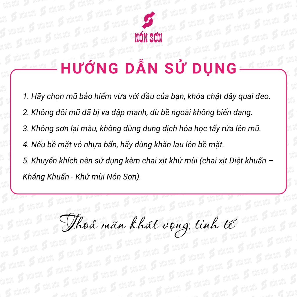 Thông tin sản phẩm Mũ Bảo Hiểm chính hãng Nón Sơn • Thương hiệu: Nón Sơn • Xuất xứ: Việt Nam • Chất liệu: Chất liệu bằng nhựa ABS nguyên sinh được nhập khẩu. •