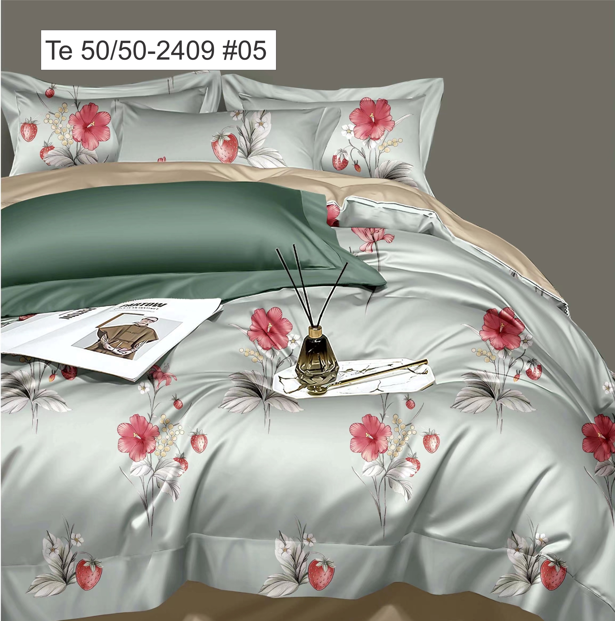 Bộ chăn ga gối Tencel 100% cao cấp Hoạ tiết Hoa xanh