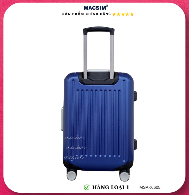 Vali Macsim được làm từ chất liệu nhựa nguyên chất PC. Tấm lót bên trong Poliester 150D xuất xứ Trung Quốc được REACH kiểm nghiệm và phê duyệt, bánh xe 360 độ hãng Hinomata của Nhật ; Khóa kéo thương hiệu SBS xuất xứ Trung Quốc, Khóa TSA hãng Master Lock của Mỹ.  Thiết kế vali đơn giản lịch lãm vô cùng sang trọng, bền bỉ, tạo dấu ấn phong cách thời trang cá nhân của bạn trên mọi cuộc hành trình. Vali cao cấp Macssim thích hợp với những người thường xuyên di chuyển cần chiếc vali nhẹ, có độ bền tốt.