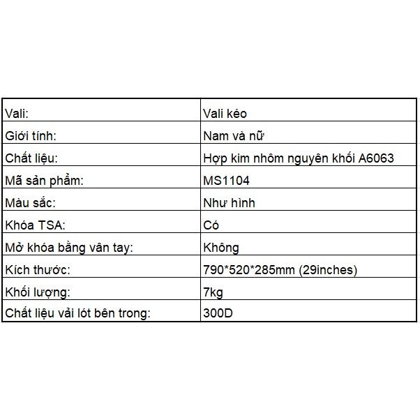 ✨Vali hợp kim nhôm nguyên khối MS1104 Macsim cao cấp màu Bạc cỡ 29 inches