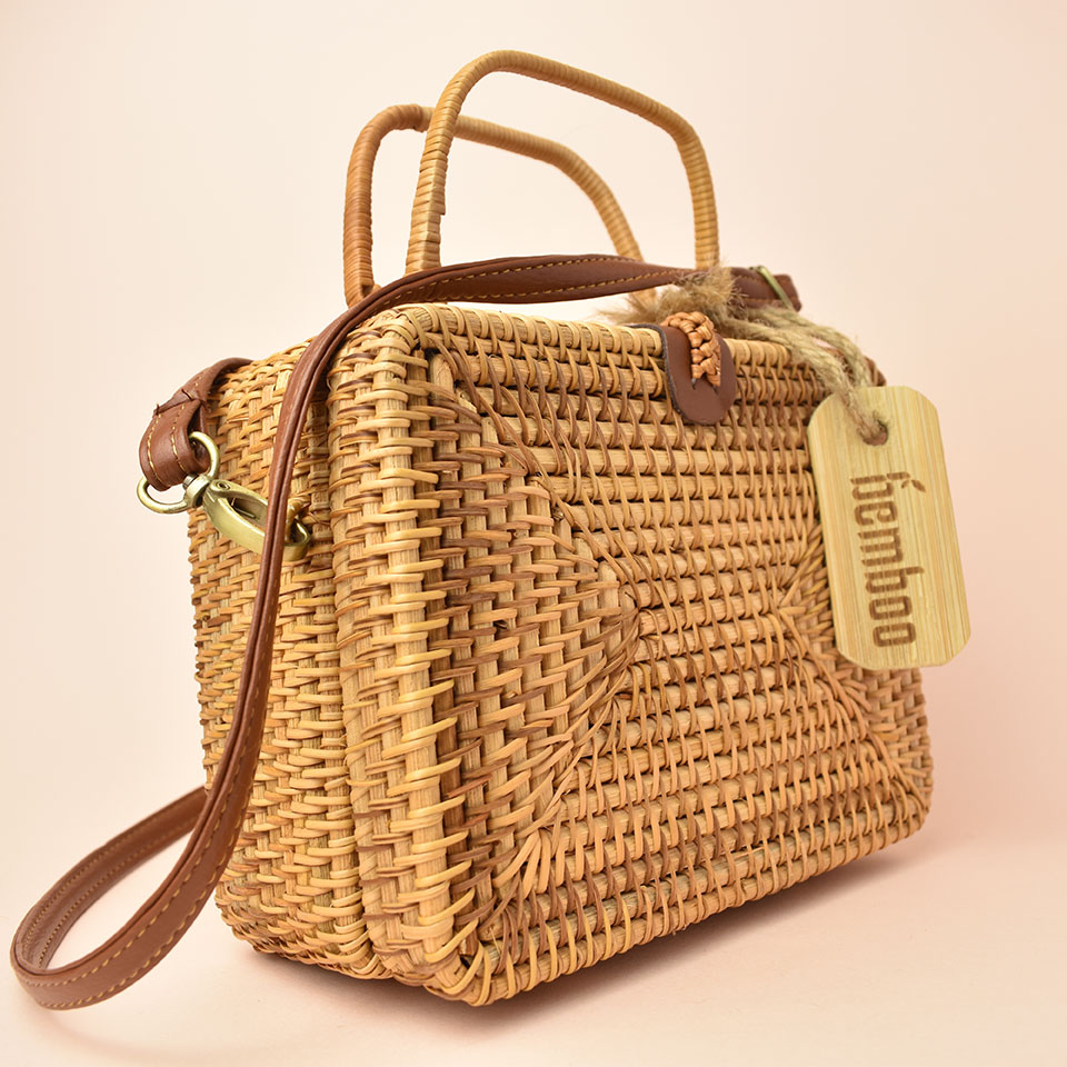 Chất liệu: Thân túi: 100% sợi mây - Dây túi: giả da - Lót túi: vải cotton 100% kèm khóa gài bằng nút bấm