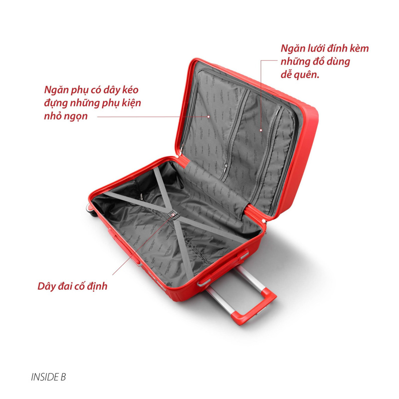 Ngăn chứa được thiết kế rộng rãi, ngăn được chia khoa học với 1 lớp màng vải giúp bạn có thể phân chia đồ bẩn, các vật dụng cá nhân,... Ngoài ra, ngăn còn lại được may tỉ mỉ thêm dây đai cố định giúp cố định quần áo, hàng lí được gọn gàng, ngăn nắp.