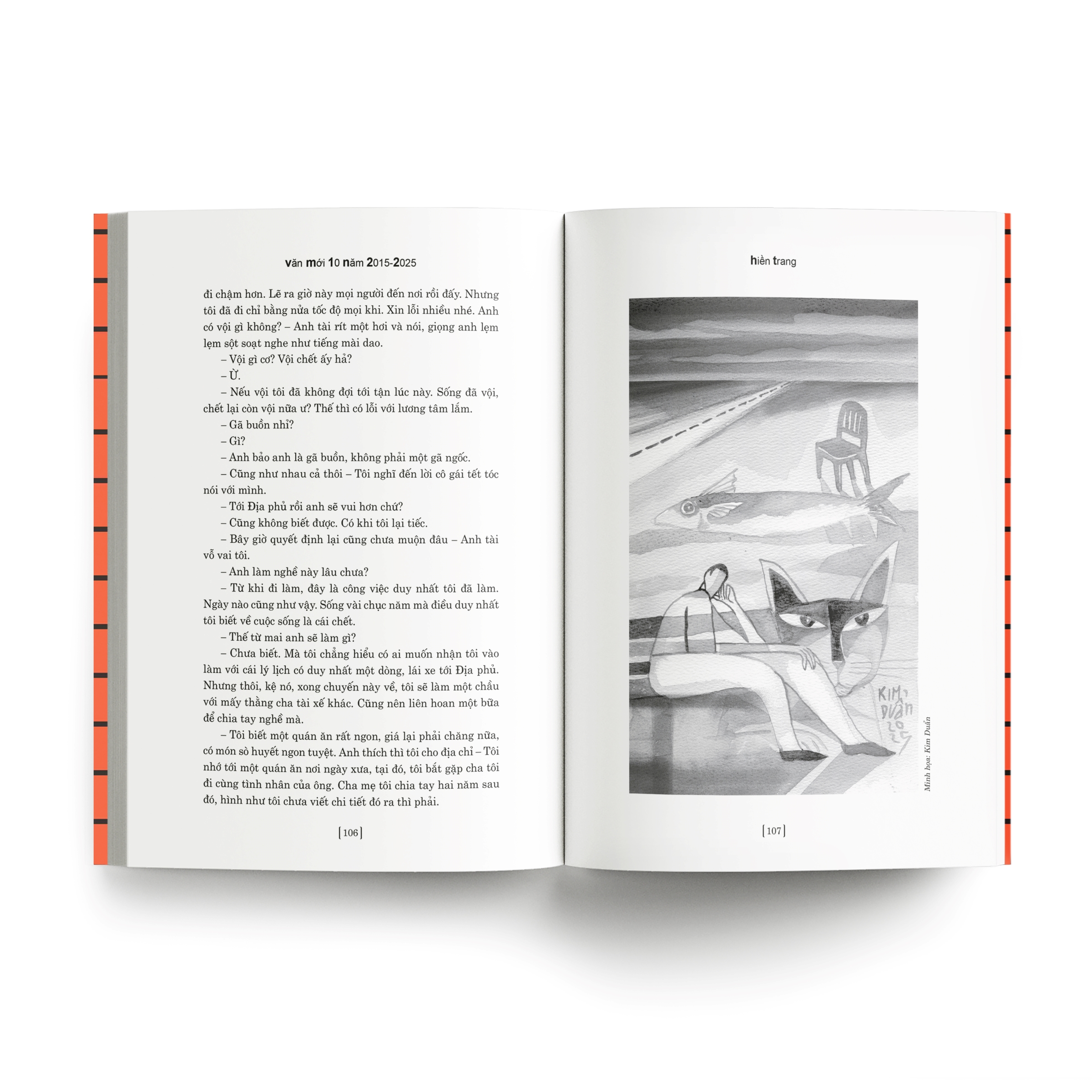 Văn mới 10 năm 2015 - 2025 “Văn Mới 10 năm 2016 - 2025” là tập thứ tư trong bộ tuyển tập Văn Mới được xuất bản định kỳ năm năm một lần. Đây là tập mở rộng, tiếp nối hành trình của Văn Mới sau chặng đường mười lăm năm khép lại vào năm 2015. Đây cũng là ấn bản ghi dấu chặng đường 25 năm của tuyển tập Văn Mới tính từ “Văn mới 5 năm đầu thế kỷ”. Cuốn sách gồm 41 truyện ngắn đặc sắc của các tác giả – bao gồm những tác giả mới và tác giả đang được mến mộ. Tuyển tập quy tụ những nhà văn tiêu biểu của các miền đất nước; các nhà văn trong mọi ngành, mọi giới; nhà văn thuộc nhiều thế hệ, từ độ tuổi hai mươi cho đến cao niên ngót một thế kỷ; có nhà văn trong nước và nhà văn đang sống ở nước ngoài. Độc giả sẽ được gặp lại những nhà văn được yêu mến từ lâu như Ma Văn Kháng, Bảo Ninh, Hồ Anh Thái, Lê Minh Khuê, Nguyễn Thị Thu Huệ… và được gặp gỡ những gương mặt mới như Võ Đăng Khoa, Hiền Trang, Huỳnh Trọng Khang… Các tác phẩm bao quát nhiều vấn đề, từ miền xuôi đến miền ngược và biển đảo, mở rộng biên độ đến những xứ sở bên ngoài biên giới. Tuyển tập cũng chủ trương thu nạp nhiều phong cách văn chương khác nhau, từ giọng điệu nghiêm ngặt cho đến hài hước và bi hài hòa trộn, tự sự truyền thống được đặt bên cạnh những tìm tòi về nghệ thuật và nội dung. Sách cũng chú trọng giới thiệu những phương pháp nghệ thuật văn chương được các nhà văn sử dụng như chủ nghĩa hiện thực, chủ nghĩa hiện thực kỳ ảo, dòng ý thức, dòng cảm xúc... Các tác phẩm được sắp xếp theo thứ tự ABC tên tác giả, bảo đảm chen lẫn giữa các đề tài, xen kẽ các phong cách, và cũng tạo ấn tượng bình đẳng, không phân biệt nhà văn bậc cao niên với thanh niên, nhà văn đã định hình với tác giả mới xuất hiện, nhà văn ở các vùng địa lý… Ấn bản có minh họa của các họa sĩ Đặng Xuân Hòa, Đỗ Hoàng Tường, Hoàng Phượng Vỹ, Ngô Xuân Khôi, Bùi Tiến Tuấn, Kim Duẩn, Đặng Hồng Quân. Những minh họa này góp phần làm giàu thêm trải nghiệm đọc, mở ra không gian hình ảnh song hành cùng câu chữ. Nhờ đó, tuyển tập trở nên sinh động và gợi cảm hứng hơn cho độc giả.