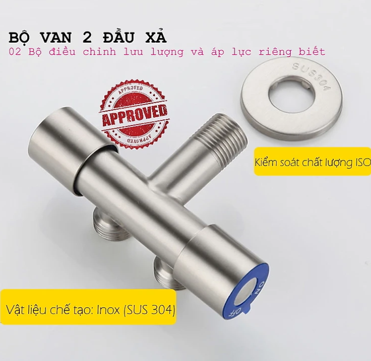 Van nước chia 2 cổng xả Inox 304