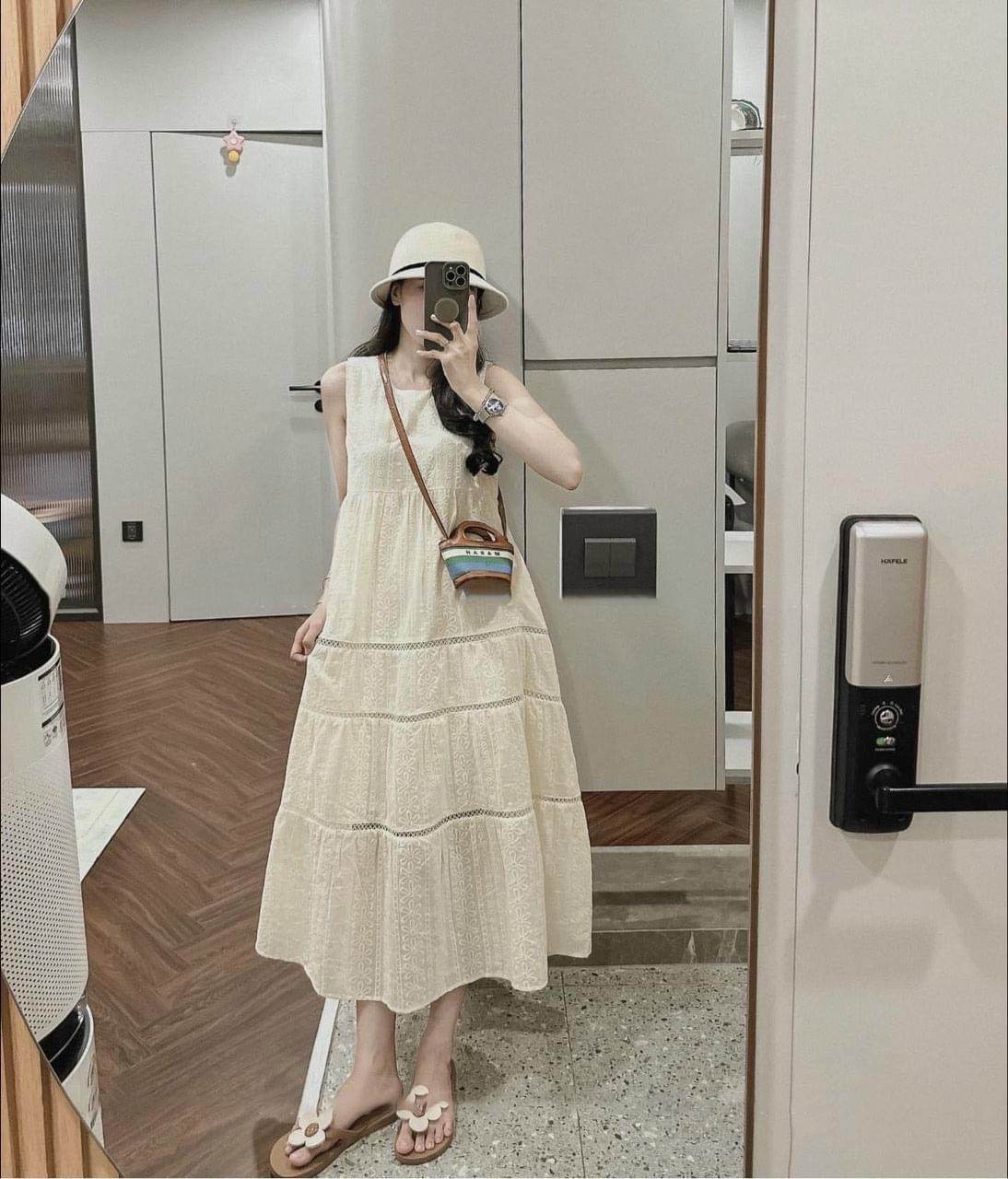 ✨Váy Bầu Sát Nách Mùa Hè Azuno V84 Chất Liệu Cotton Ren May 2 Lớp Cao Cấp