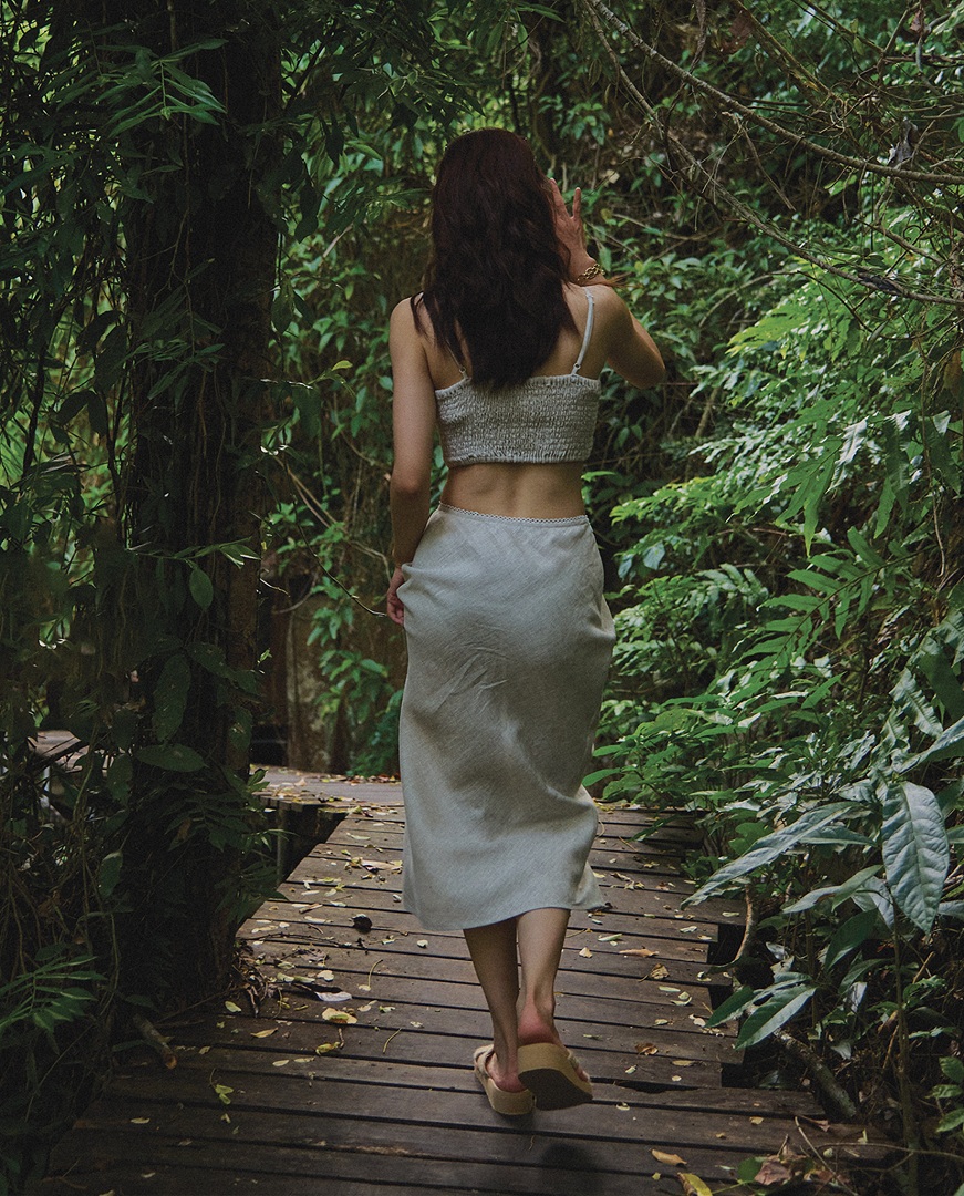 Dù ở tuổi nào, phong cách thời trang thanh lịch, tối giản, phù hợp với khí hậu nơi sinh sống hoặc dừng chân vẫn luôn là ưu tiên với những người từng trải. Một chiếc áo crop top hai dây và chân váy midi đồng bộ trên nền thức vải linen chắc chắn sẽ mang đến vẻ ngoài nhẹ nhàng, phóng khoáng cho bạn trong những ngày hè.