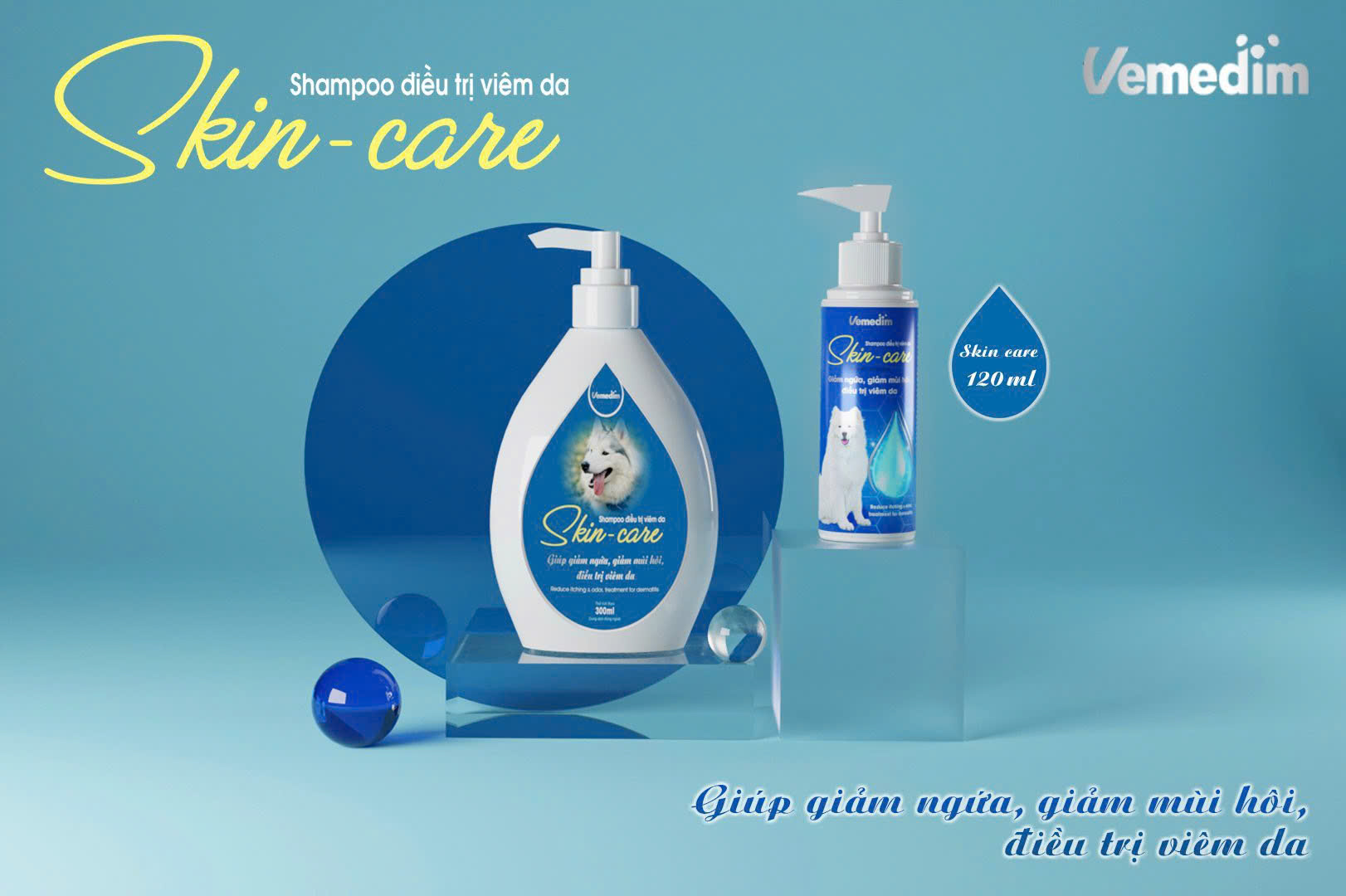 Vemedim SKIN CARE Shampoo - Phòng trị các bệnh xảy ra thường xuyên trên da lông như: nấm da, viêm nang lông, viêm da có mủ, gây ngứa ngáy, hôi lông, rụng lông, gãy lông,
