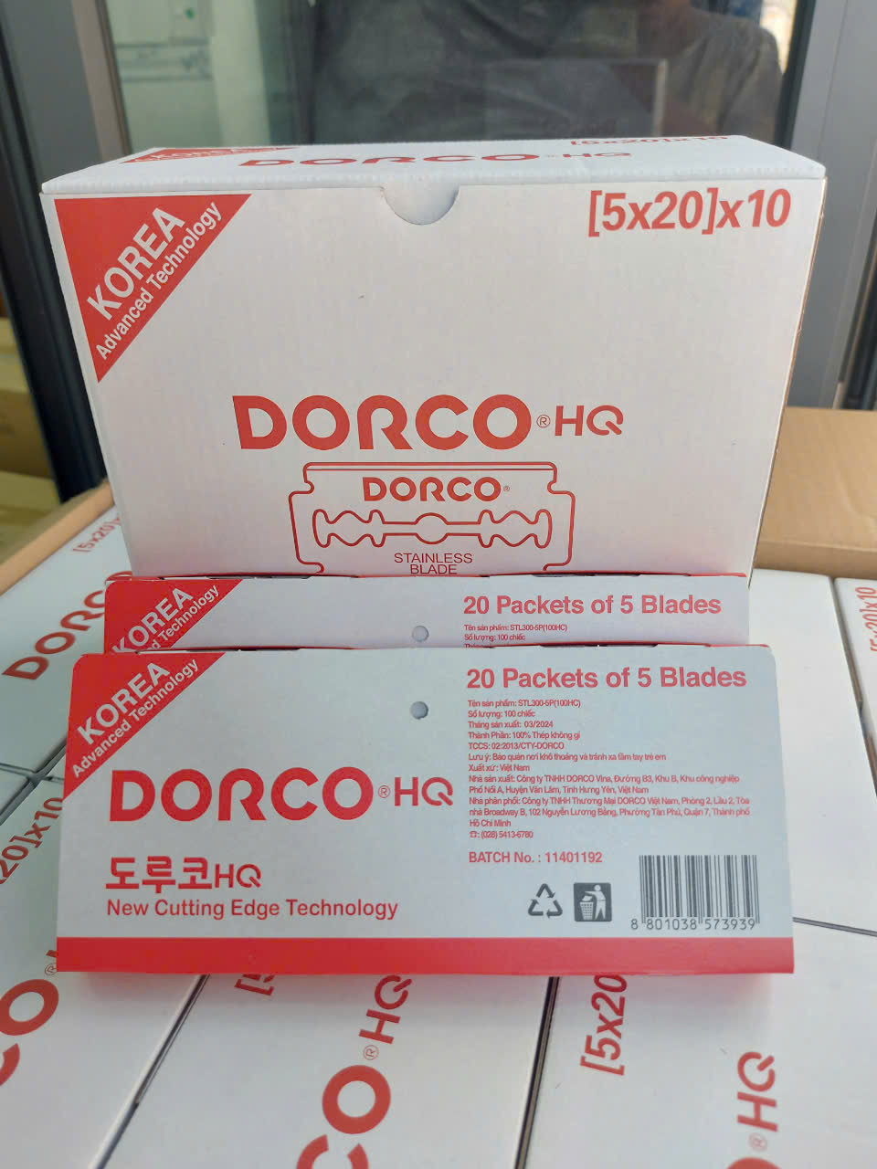 Vỉ 100 hộp lưỡi lam Dorco HQ màu đỏ ( Dao lam Dorco Đỏ) là sản phẩm lưỡi dao Dorco chính hãng Hàn Quốc Sản phẩm có độ mỏng lưỡi dao là 0.075mm giúp lưỡi dao tăng độ sắc bén. Lưỡi lam Dorco HQ màu đỏ đươc sản xuất bao phủ kim loại nhiều lớp gia tăng độ bền, chống lại sự ăn mòn, tạo cảm giác thoải mái cho người sử dụng. Cấu tạo lưỡi dao 4 lớp: Lớp ngoài cùng là lớp màng nhựa bôi trơn cực mỏng, lớp tứ 2 là lớp màng mỏng chống ăn mòn. Lớp tứ 3 là lớp màng gia tăng độ bền và lớp trong cùng là lớp thân lưỡi độ cứng cao. Công dụng trong nghành điện thoại dùng để cao film ,cắt film Ngoài ra rất được ưa chuộng trong làm đẹp : cạo mặt,cạo râu,cạo chân mày,,,