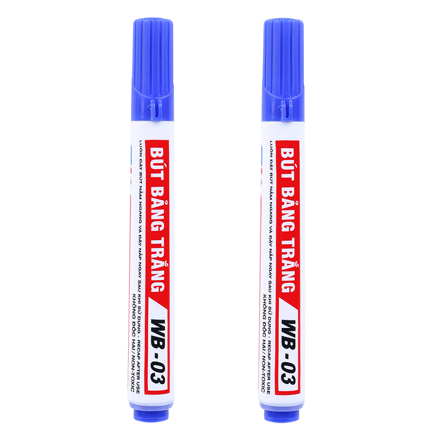 - - Vỉ 2 Bút Lông Bảng Thiên Long WB-03 - Xanh có nét viết êm, rõ ràng, không nhòe mờ, kích thước ngòi bút 2.5mm. Bút có đầu dạ, ngòi mềm, mau khô và dễ