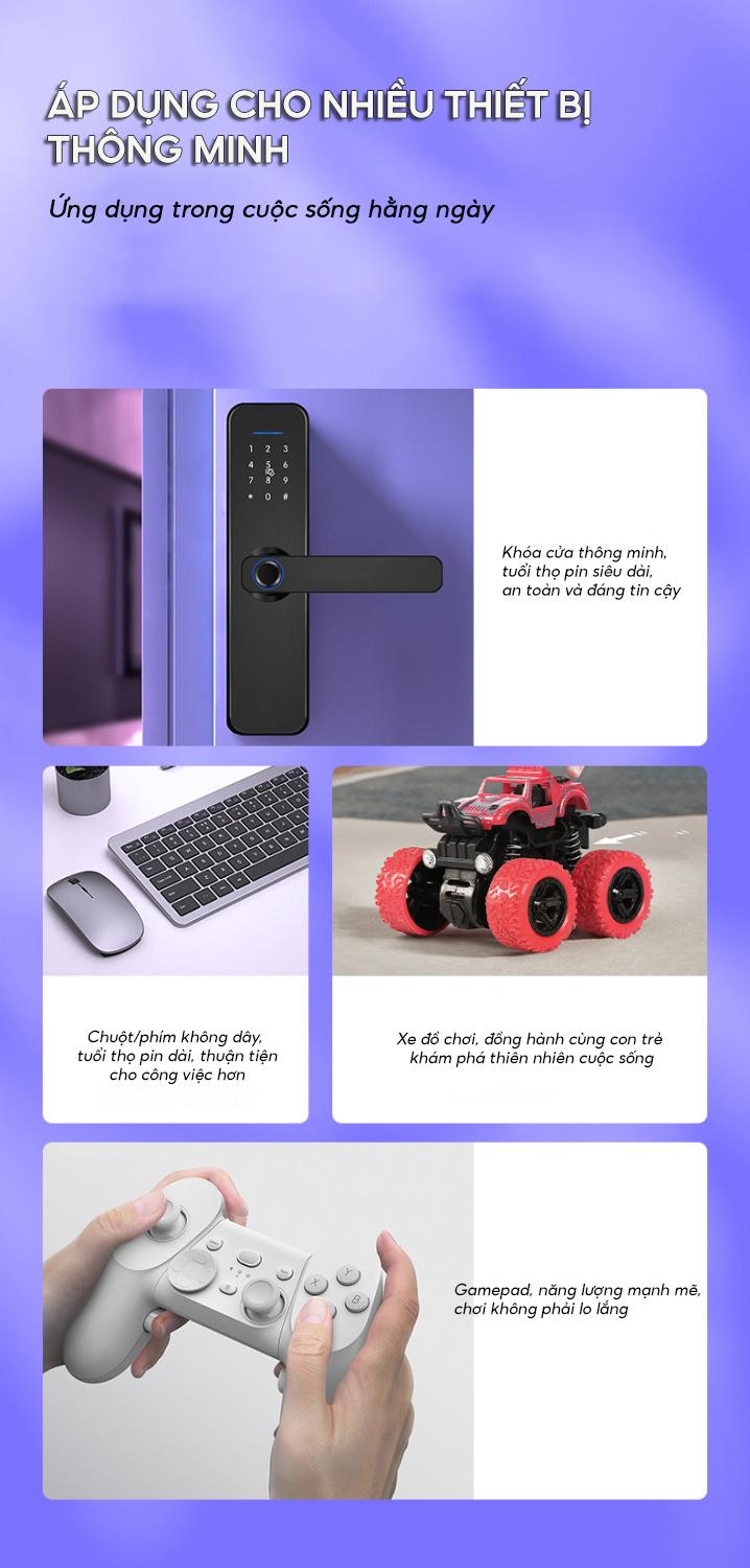 - Sử dụng: Dùng cung cấp năng lượng cho các thiết bị điện tử nhỏ như đồ chơi, đèn pin, điều khiển,...