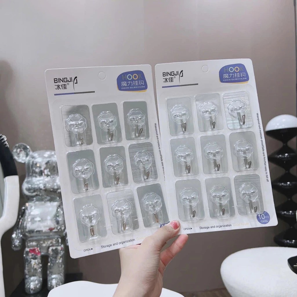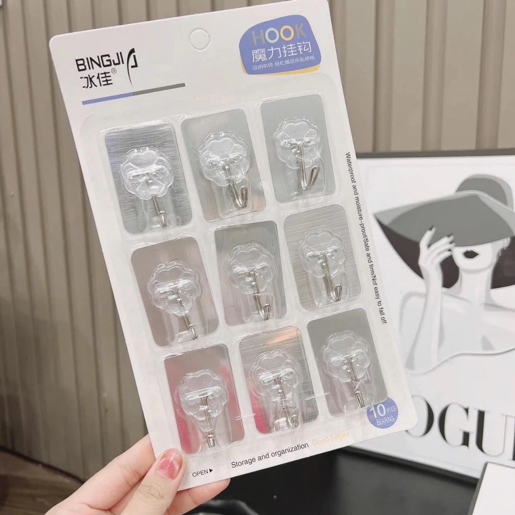 ✨Vỉ 9 móc dán tường chịu lực siêu chắc, móc dán tường đa năng chịu nặng tốt