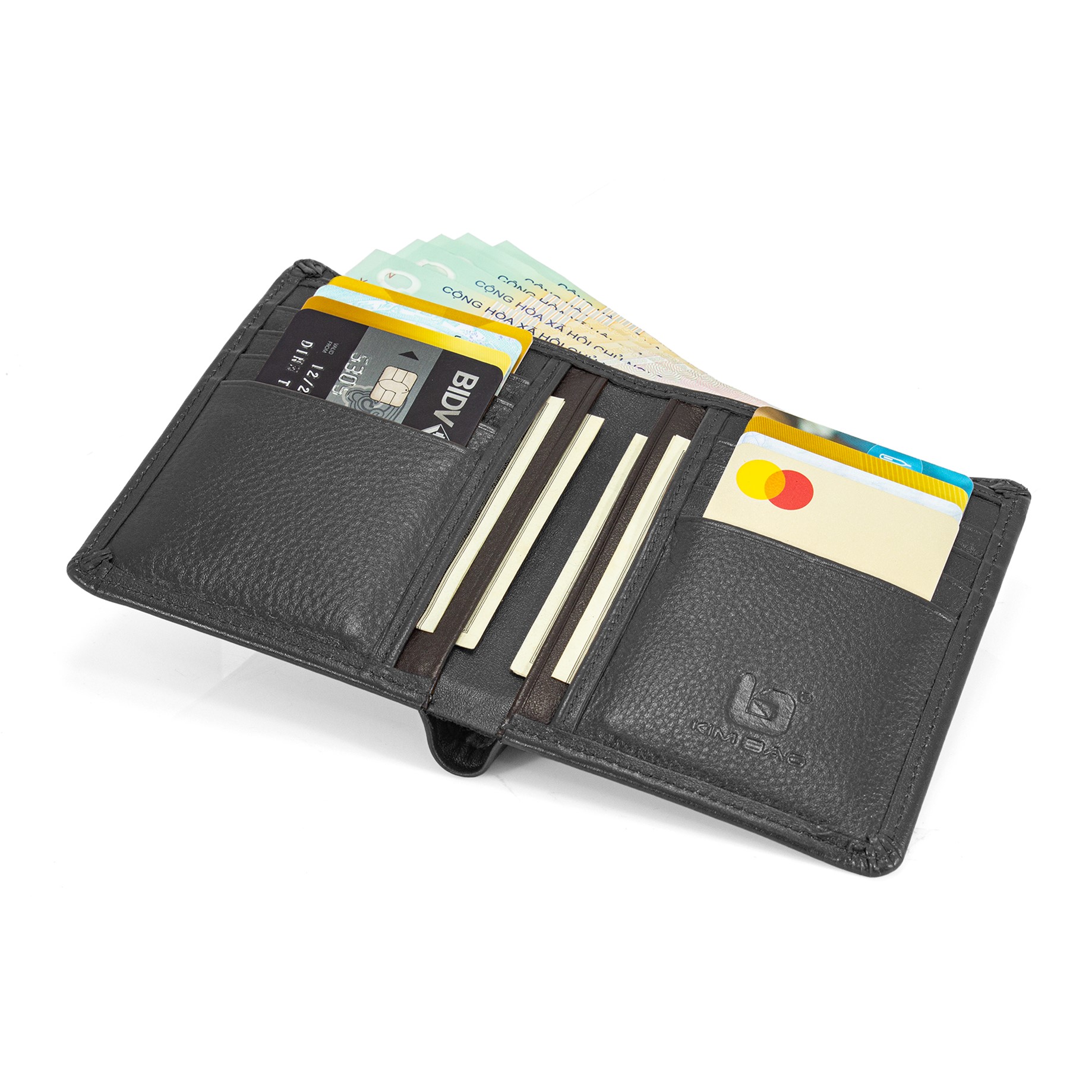 - Ví nam được làm bằng chất liệu da bò cao cấp tạo kiểu dáng lạ mắt, sang trọng. - Thiết kế nhỏ gọn, thời trang, dạng ví nam xếp đôi, có nhiều ngăn tiện