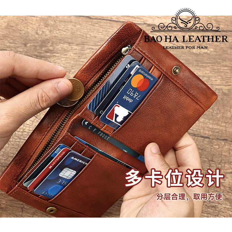 ✨Ví Đứng Nam Da Bò Cao Cấp BHM1249 Mềm Mại - Bền Bỉ, Chống Xước - Chống Nhăn Tốt, Thiết Kế Cổ Điển, Dáng Đứng - Gập 2, Ngăn Đựng Tiền Có Khóa Kéo, Nhiều Ngăn Để Giấy Tờ Tiện Dụng