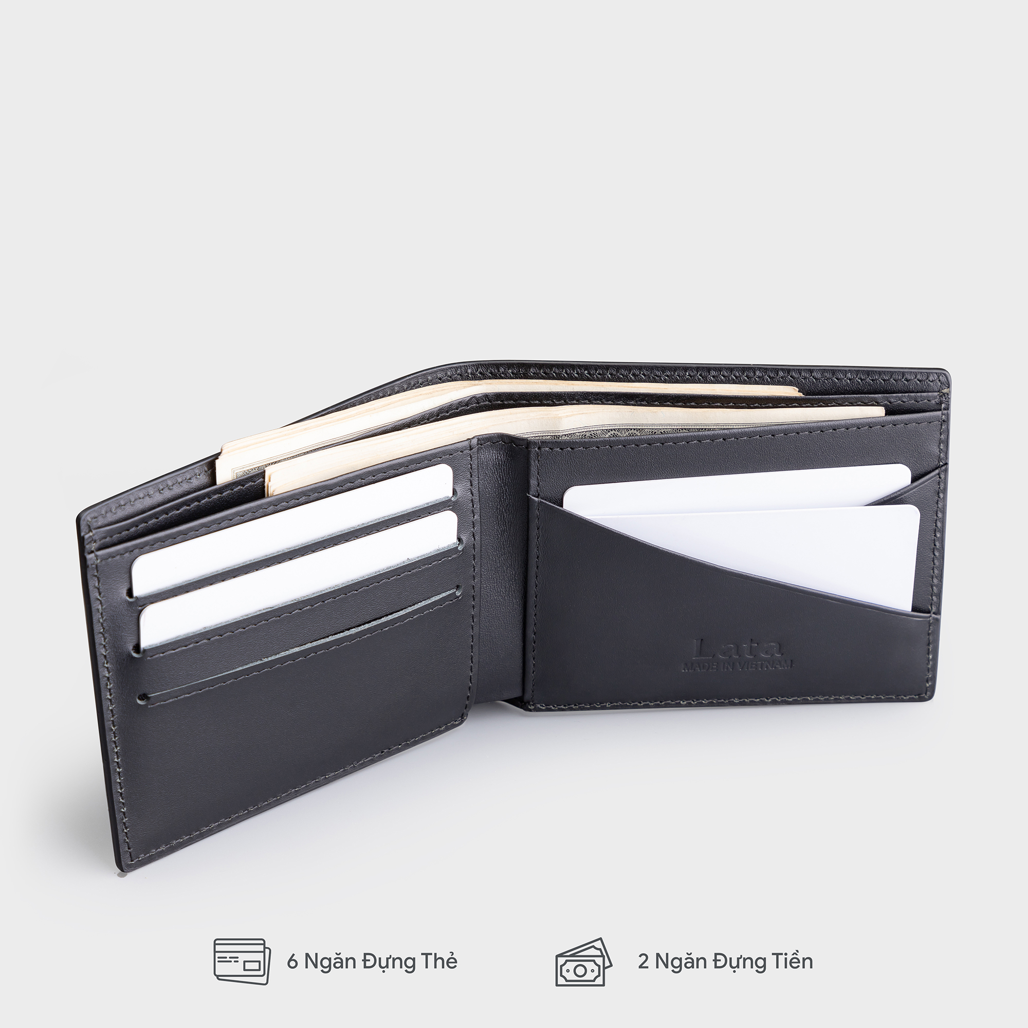 Ví da nam dáng ngang Lata LVN121 được thiết kế tối giản, dáng ví truyền thống nhưng được phối thêm 1 ngăn phụ ở mặt sau của ví có thể bỏ thẻ card. Chất liệu