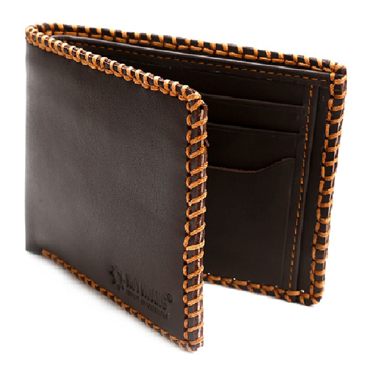 Ví/Bóp nam Huy Hoàng da bò đan viền màu nâu 2136