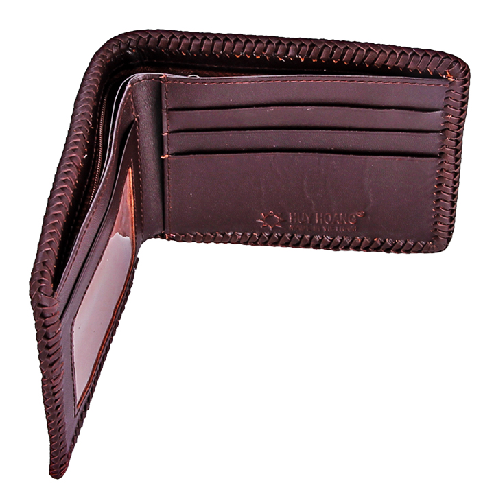 Ví/Bóp nam Huy Hoàng da bò viền chỉ màu nâu 2130