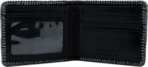 Ví/Bóp nam Huy Hoàng da bò viền chỉ màu đen 2129