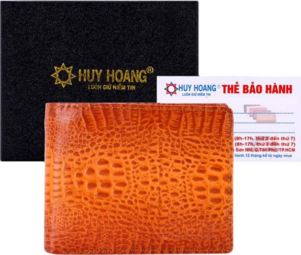 Ví/Bóp nam Huy Hoàng da bò vân cá sấu màu vàng bò 2147