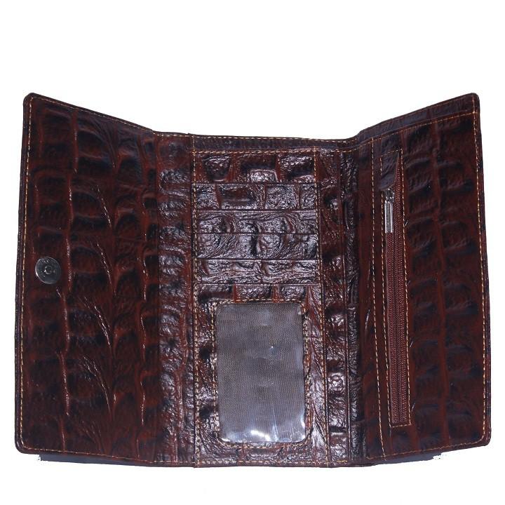 Ví/Bóp nữ da bò Huy Hoàng vân cá sấu lớn 3 gấp màu nâu đỏ 3154