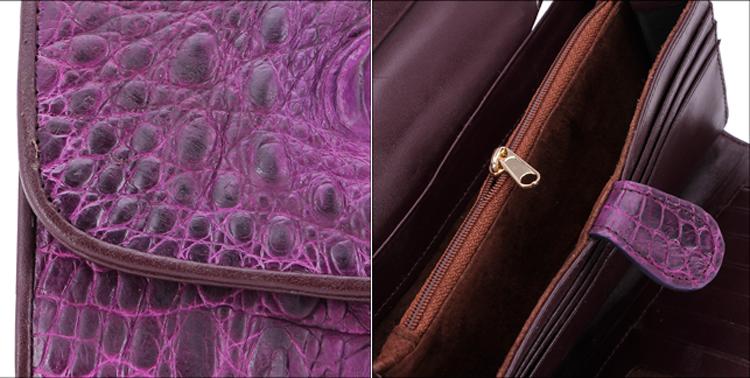 Ví/Bóp nữ da bò Huy Hoàng vân cá sấu lớn 3 gấp màu nâu đỏ 3169