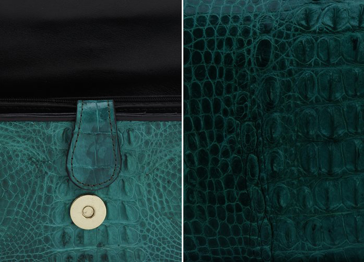 Túi xách nữ da cá sấu và ví cầm tay 3 gấp màu xanh lá của chị Linh đặt may. zalo 0976958076
