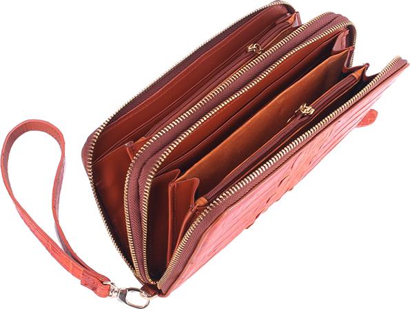 Ví/Bóp nữ da bò Huy Hoàng vân cá sấu nhiều ngăn màu nâu 3134
