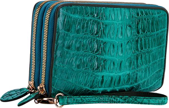 ✨Ví Nữ Da Cá Sấu Nhiều Ngăn Gai Huy Hoàng HT3715 (11 x 22 cm) - Xanh Lá