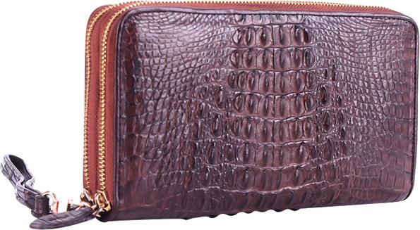 Ví da cá sấu cầm tay 2 ngăn khoá kéo | Ví cầm tay màu nâu đỏ