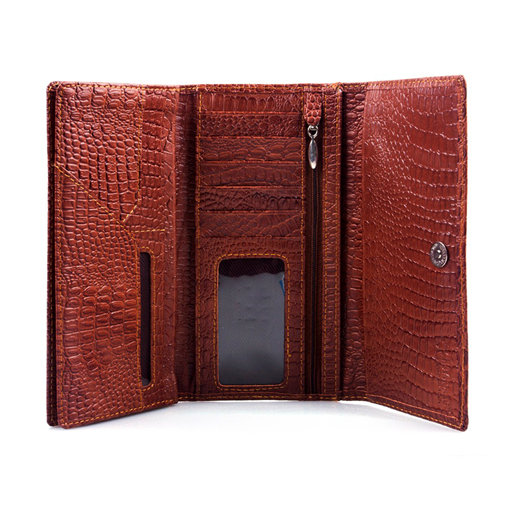 Ví/Bóp nữ vân cá sấu Huy Hoàng bấm nút màu nâu 3110