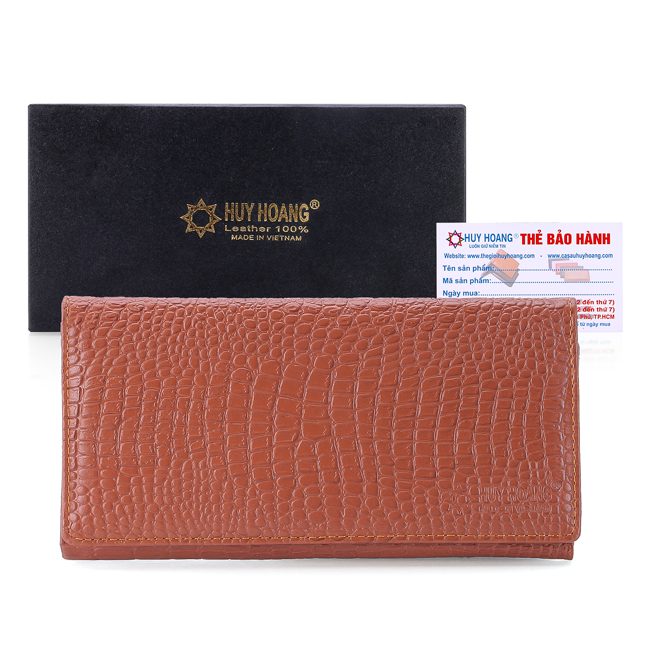 Ví/Bóp nữ Huy Hoàng da bò vân cá sấu 2 gấp màu nâu 3103